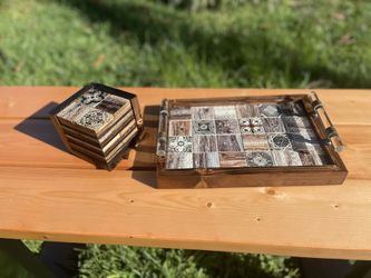 Handcrafted Wood & Tile Tray + 4 Coaster Set ✨$75Altamonte Springs, FL