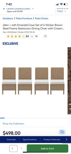 New allen + roth Emerald Cove Set of 4 Wicker Brown Steel Frame Stationary Dining Chair with Cream...$395.00 O.B.O.$395Houston, TX