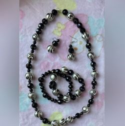 Elegant vintage Black Onyx and Zebra Agate necklace earrings and bracelet set $175Las Vegas, NV