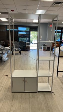 #10160824 DlandHome Wooden Free-standing Closet Organizer with Shelves and Cabinet, Clothes Rack Shelves Heavy Duty Clothes Shelf Garment Rack with Sh$60Lenexa, KS