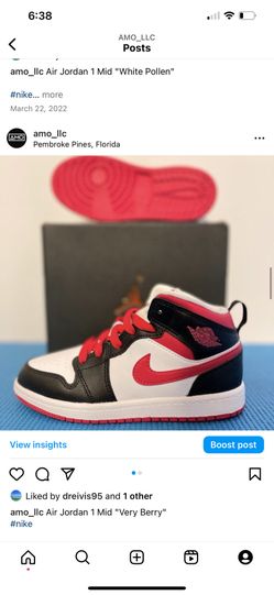 New Nike Air Jordan 1 Mid Verry Berry Size 3Y New In Box$100Pembroke Pines, FL