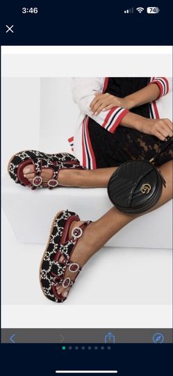 Authentic Gucci GG Tweed 50 BN/ Azalea Printed Slingback Black/Red Platform Sandals $499Las Vegas, NV