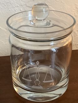 Antique Lawyer Gift Crystal Candy Jar With Lid Engraved With Scales Of Justice$85Miami Beach, FL
