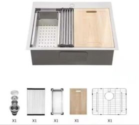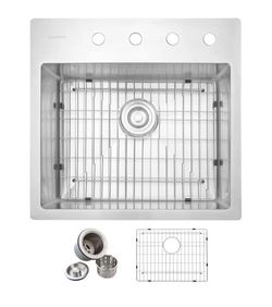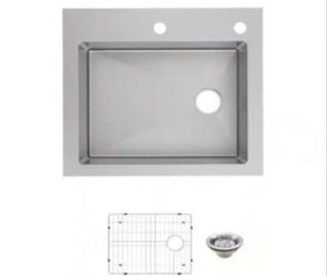Lordear 25 in. Drop-in Single Bowl 18-Gauge Stainless Steel Workstation Kitchen Sink with Bottom Grid$120North Las Vegas, NV
