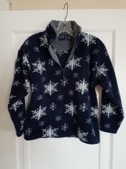 VINTAGE GAP Kids Navy Blue Snowflake Print Sherpa Fleece 1/4 Zip Pullover, Large$10Baltimore, MD