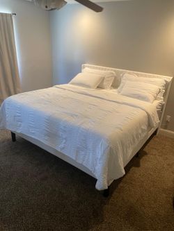 White Velvet Queen Bed Frame with Wingback Headboard & Wooden Slats$270San Diego, CA