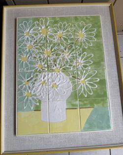 Vintage 1960s Mid Century Modern Ceramic Tile Wall Art – Textured Floral Panel – Framed$200Hilton Head Island, SC