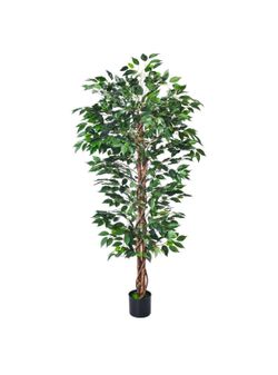 Artificial Ficus Braided Trunk Plastic Bush Potted Green Leaves Houseplant$65Montclair, CA