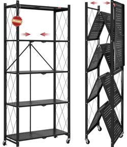 5 layer black folding storage rack with wheels$85Corona, CA