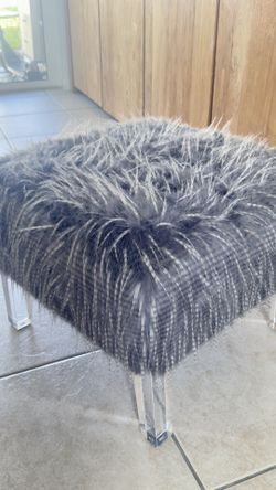 Square Ottoman In Gray/White Fur $80Miramar, FL