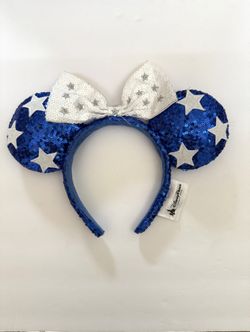 Disney Parks Minnie Mouse Ears Headband Blue White Sequins Stars Bow Patriotic$15Clermont, FL