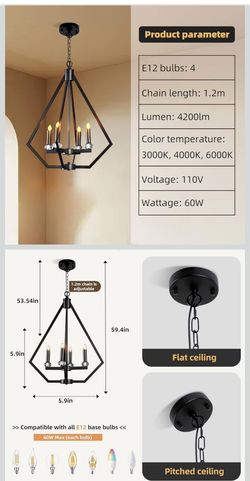 Baysquirrel 4 Light Iron Black Farmhouse Chandelier Rustic Geometric Hanging Light Adjustable NEW$80Hendersonville, TN