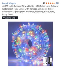 Wiopss Multi-Colored String Fairy Lights - LED X-Long Outdoor 400’ Waterproof W/Remote NEW (FIRM)$20Hendersonville, TN