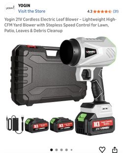 Yogin 21V Cordless Electric Leaf Blower - Lightweight High-CFM Yard Blower 2 Batteries Charger NEW$50Hendersonville, TN