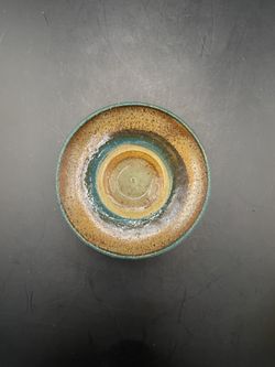 Handmade Yaffit Studio Pottery Dish - Signed S-FLA - Teal & Amber Glaze 3" Small$14Boca Raton, FL