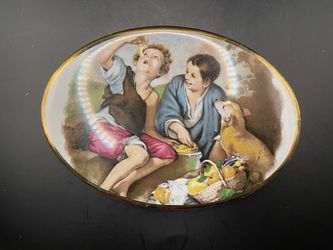 Vintage Oval Porcelain Plaque Murillo Eating Grapes and Melons Gold Rim 6" x 4"$20Boca Raton, FL