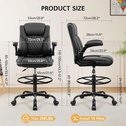 Drafting Chair,Tall Office Chair for Standing Desk, High Executive Leather Ergonomic Computer Chair with Adjustable Height and Flip-Up Armrest for Cou$65San Diego, CA