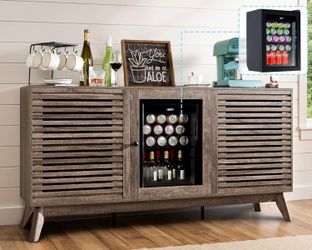 60" Farmhouse Wine Bar Cabinet with Beverage Fridge (Included), Coffee Bar Cabinet with Drawer Storage, Sideboard Cabinet, Mini Fridge Cabinet for Din$160San Diego, CA