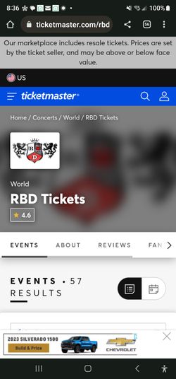 2 Concert Tickets for RBD In Glendale AZ 9/12 8pm$140Tucson, AZ