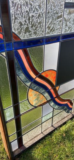 Stained Glass Sunset Scene In Wood Window Frame$950Snohomish, WA