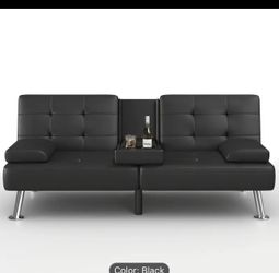 Convertible Sofa Bed Adjustable Couch Sleeper Modern Faux Leather Recliner Reversible Loveseat Folding Daybed Guest Bed Removable Armrests Cup Holders$180San Jose, CA