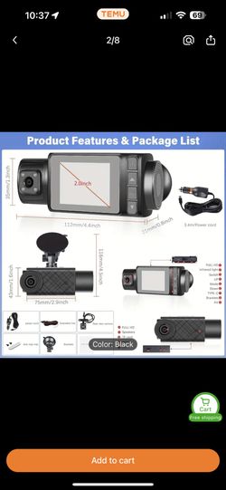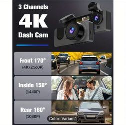 Dash Cam, 3 Channel Dash Cam, 4K+1080P Dash Cam Front and Inside, Triple Dash Cam for Car, Dash Camera with 32GB Card, 2160P Full UHD, G-Sensor, 170°D$65San Jose, CA