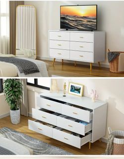CARPETNAL Dresser for Bedroom, 6 Drawer Dresser with Wide Drawers and Gold Metal Handles, Wood Dressers & Chest of Hallway, Entryway.$200San Jose, CA