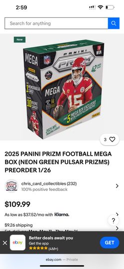 2025 PANINI PRIZM FOOTBALL MEGA BOX (NEON GREEN PULSAR PRIZMS)$90Los Angeles, CA