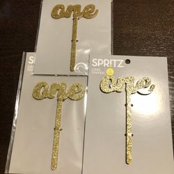Lot of 3 One Spelled Out Gold Cake Topper First Birthday Cake Party Supplies $10Ewa Beach, HI