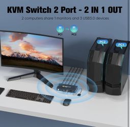 KVM Switches 2 Port 8K@60Hz, GREATHTEK KVM Switch HDMI Share USB Devices with 3 USB3.0 Hubs, 2 Computers 1 Monitor Share Keyboard Mouse Printer, Butto$15Phoenix, AZ