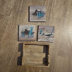 Set Of 3 Tasso Coaster Set Southwest Desert Cactus Bird Hand Painted Sandstone Cactus$20Bakersfield, CA