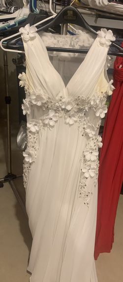 White Dress, Floral Accents, Toole Bottom With Lace Hem$225Concord, NH