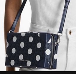 New With Tags. Michael Kors Signature Navy Blue & White Polka Dots Trunk Crossbody Bag NWT$55Artesia, CA