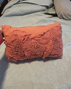 Threshold decorative lumbar pillow from Target in a warm burnt orange / terracotta tone.$15Katy, TX