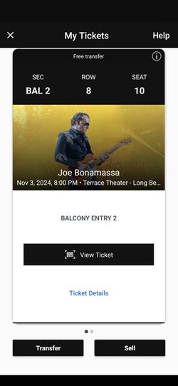 One Ticket Joe bonnamassa in long Beach this evening Terrace Theater$30Culver City, CA
