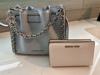 Michael Kors mini crossbody bag in a soft light blue pebbled leather and white pebbled wallet. $150Glendale, AZ