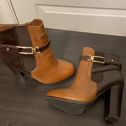 Caramel And Chocolate Leather Aldo Close-toe High Heel Ankle Boots With Faux Fur On Inside Women’s 7$35Stafford, TX