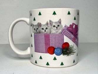 Vintage Holiday Kittens Mug Coffee Cup 12oz 1986 Presents Christmas Tree Print$8Parker, CO