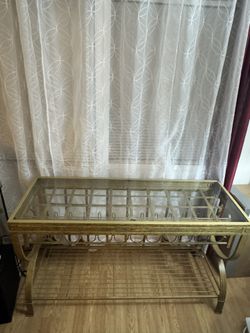 Gold Metal & Glass Console Table with Wine Rack- Elegant Entryway/Bar Table (Or Best Offer) $70Halndle Bch, FL