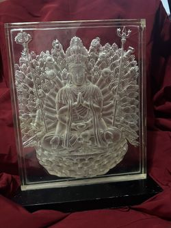 12" CLEAR LUCITE 1000 HANDS BUDDA SCULPTURE RELIGIOUS VINTAGE SPIRTUALITY ART.$75Miami, FL