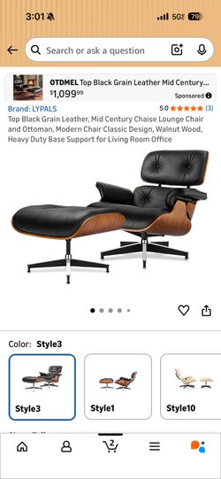 Top Black Grain Leather, Mid Century Chaise Lounge Chair and Ottoman$550Bellevue, WA