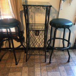 Rack De Metal Y Vidrio Para Botellas Y Dos Bancos En Buenas Condiciones En $90$75Seagoville, TX