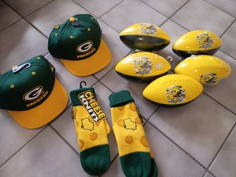 Green Bay Packers Bundle. Youth Size Embroidered Hats. 5 Mini Footballs And 2 Pair Of Youth Miittens$25Montgomery, AL