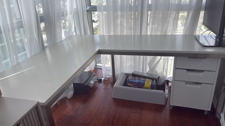 L Shaped White Desk & File Cabinet $180Miami, FL