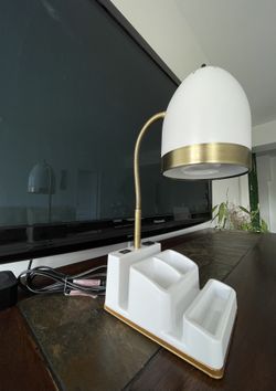 INTERTEK DESK LAMP Organizer Gooseneck Ivory & Gold USB Charger/Power Electric$23Miami Beach, FL