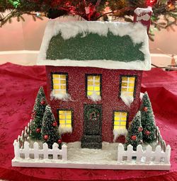 Primitive Colonial Light Up (Battery Operated) Snowy Red Salt Box Christmas House$30Hendersonville, NC