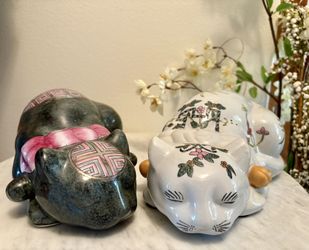 A Pair of Vintage Chinoiserie Ceramic "Nemuri Neko" or "Lucky" Sleeping Cats Porch Pick Up, Hendersonville $90Hendersonville, NC