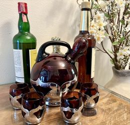 Vintage Art Deco 1930s Krome Kraft Farber Bros. Amethyst Glass & Silver Plated Cocktail Set$130Hendersonville, NC