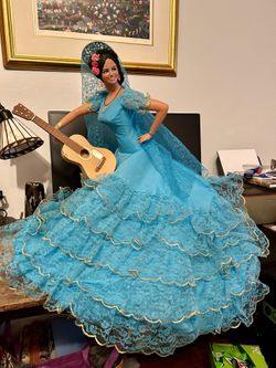 Marin Chiclana Flamenco Dancer Doll Blue Dress Made In Spain Vintage 1960s 60"$50El Cajon, CA