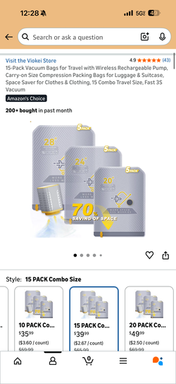 new 15-Pack Vacuum Bags for Travel with Wireless Rechargeable Pump, Carry-on Size Compression Packing Bags for Luggage & Suitcase, Space Saver for Clo$25Phoenix, AZ